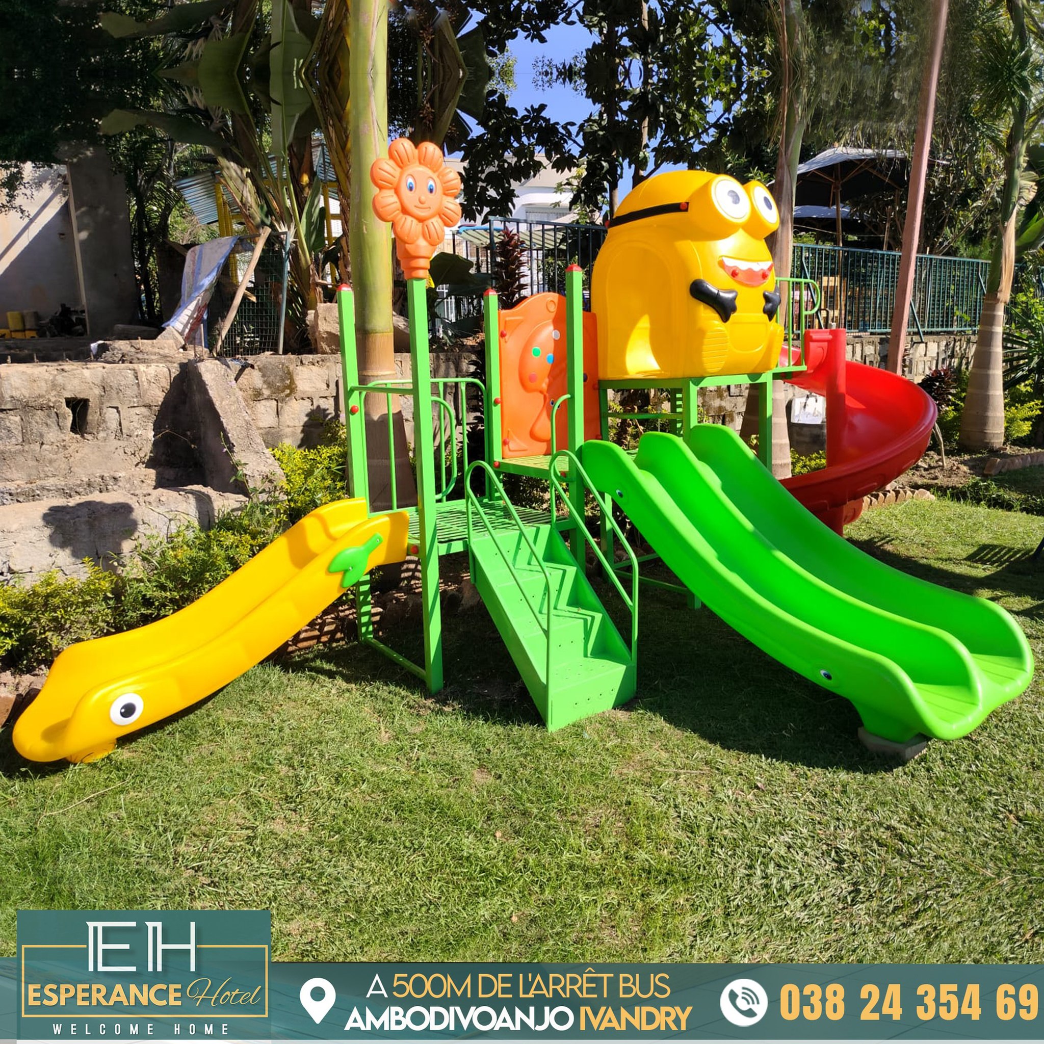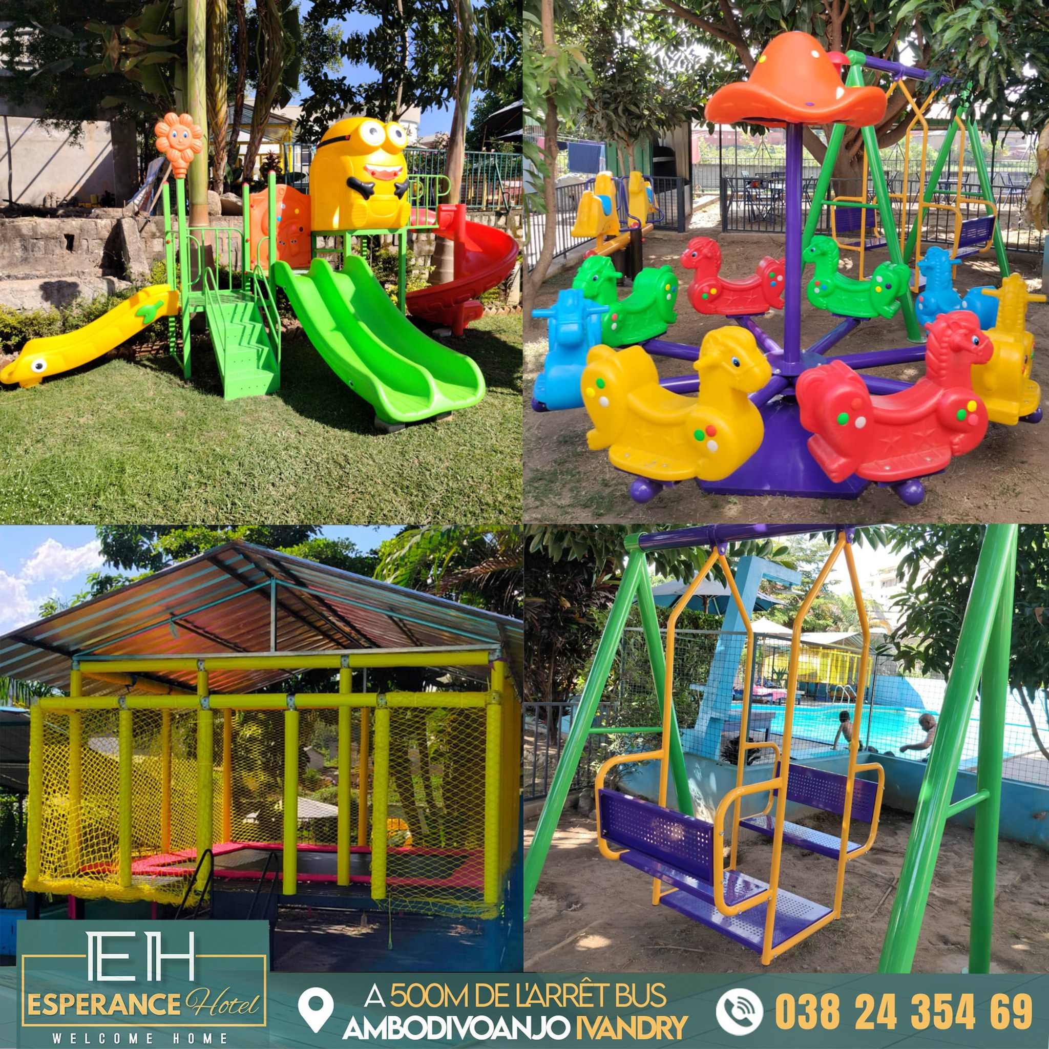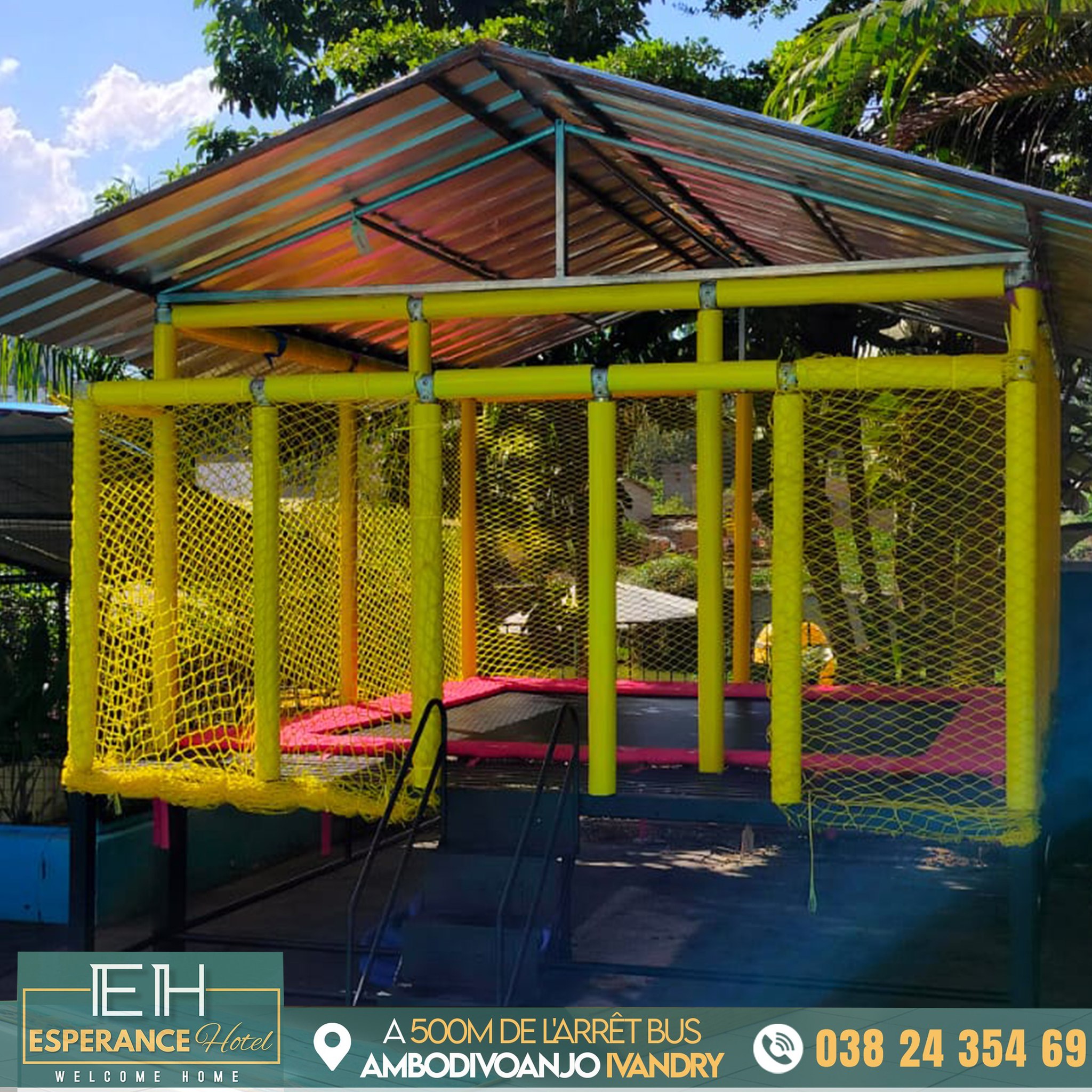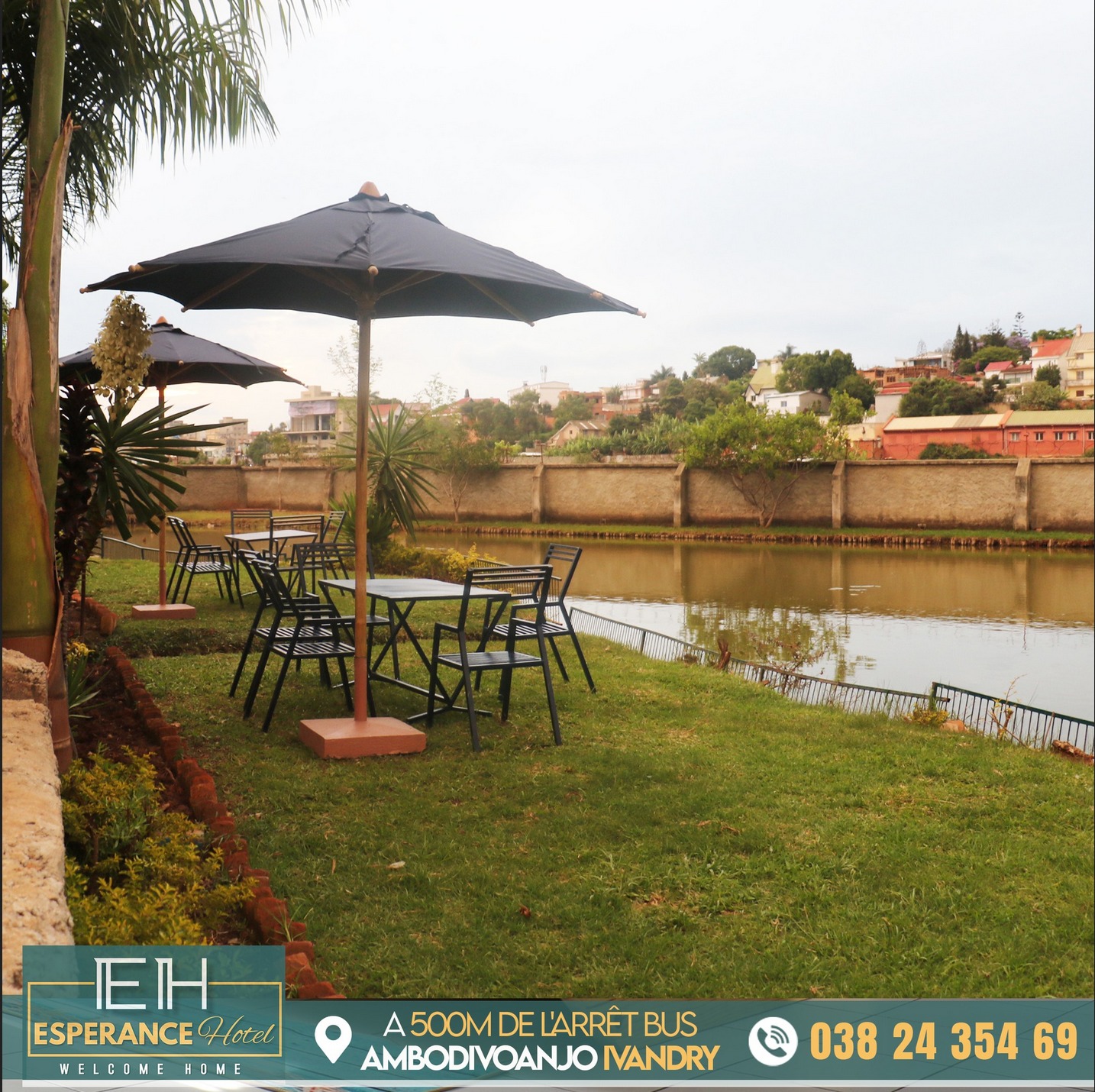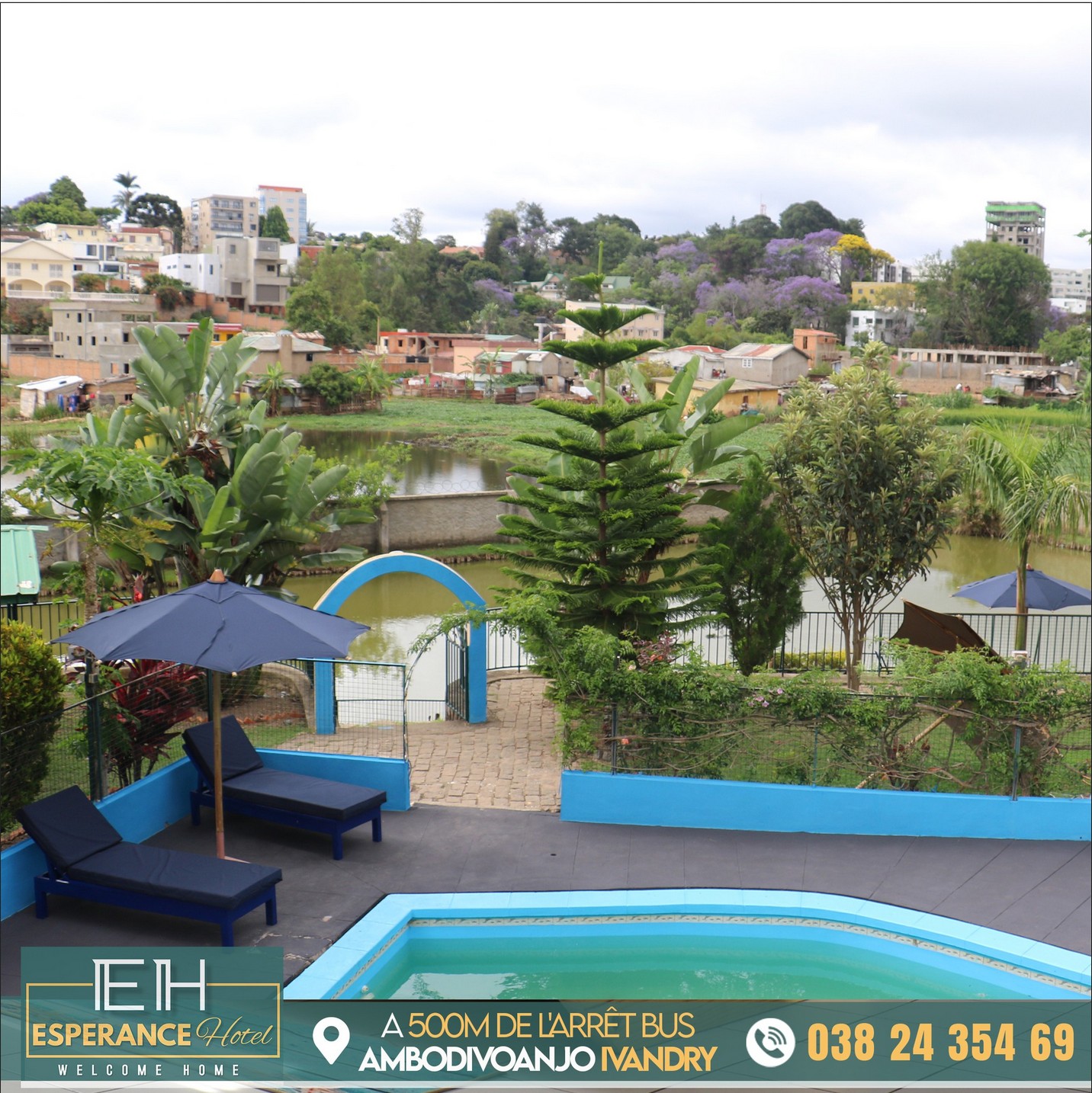 Idéalement située dans un quartier résidentiel et paisible, Espérance Hotel et Restaurant - Ivandry est juste situé à 500m de l'arrêt bus Ambodivoanjo Ivandry, en plus de son charme unique entouré de verdure, en face d'une piscine et d'un grand étang, nous mettons à votre service 08 Chambres dotées chacun de télévisions écran plat 32’’, de wifi ainsi que d’une salle de bain privative avec eau chaude.